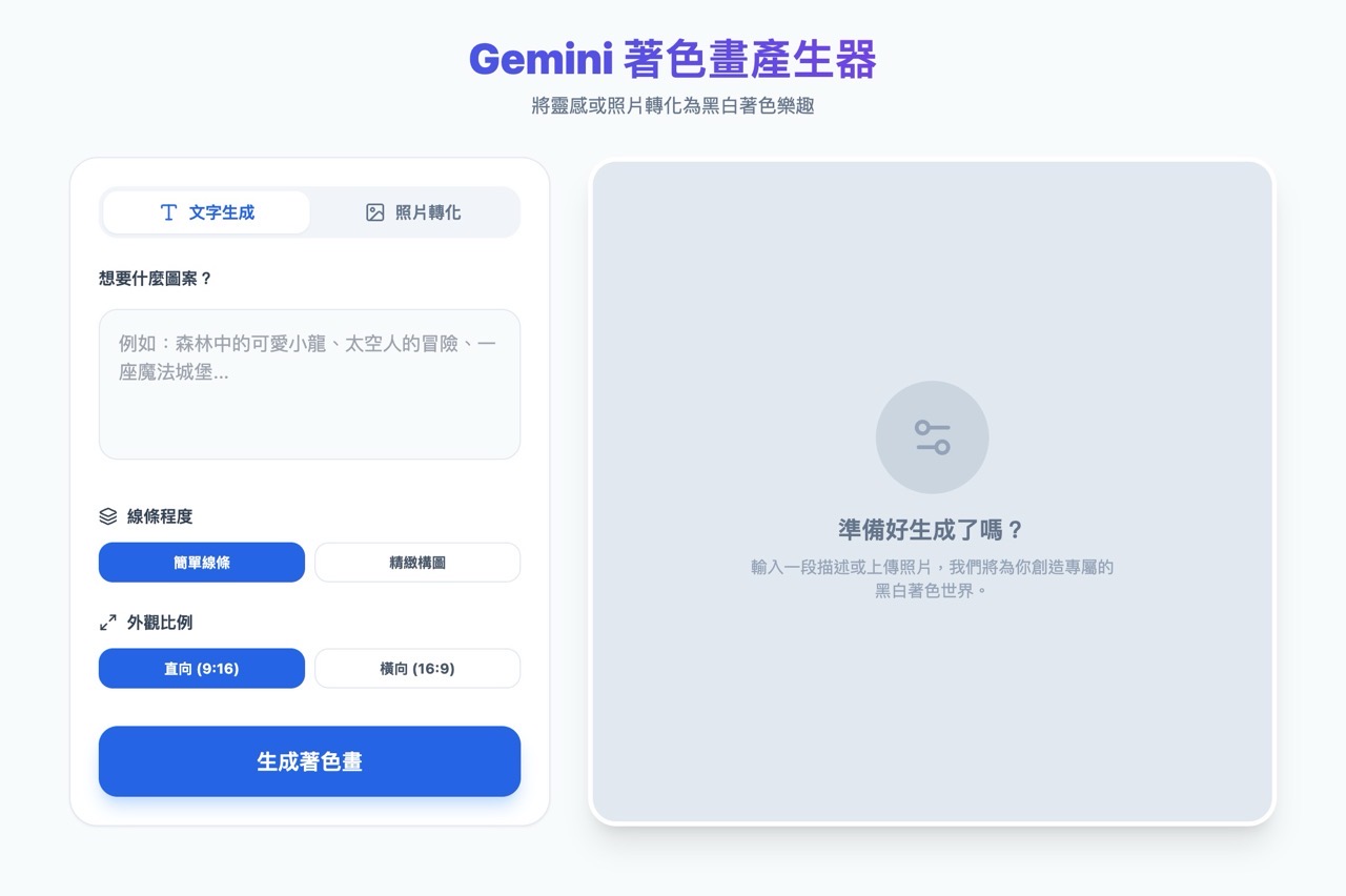 免費 AI 著色圖製作工具:Gemini 著色畫產生器