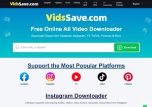VidsSave 是一個免費線上影片下載工具,號稱支援所有平台,包括 Facebook、Instagram、YT、TikTok 和 Pinterest 等,除了可下載影片,也支援將影片轉 MP3,Vids…